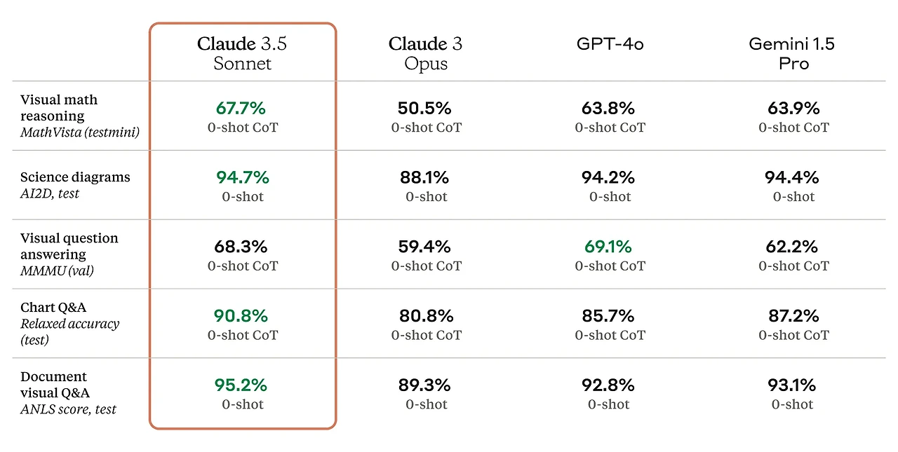 클로드 3.5 소네트 벤치마크 결과 - 타 회사 모델과 비교